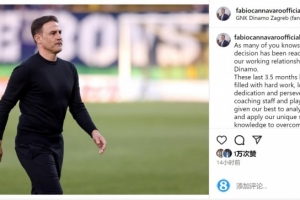 体育资讯4月11日讯 萨格勒布迪纳摩主帅卡纳瓦罗下课,上任仅3个半月。卡纳瓦罗社媒发文与俱乐部告别。